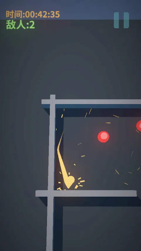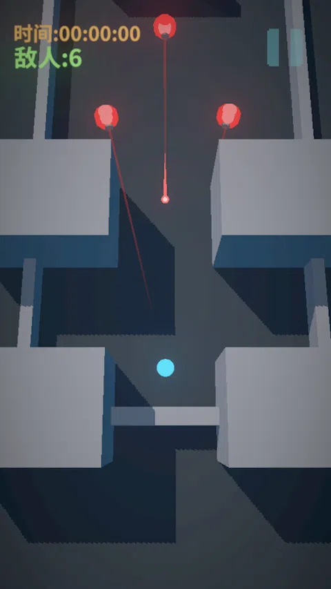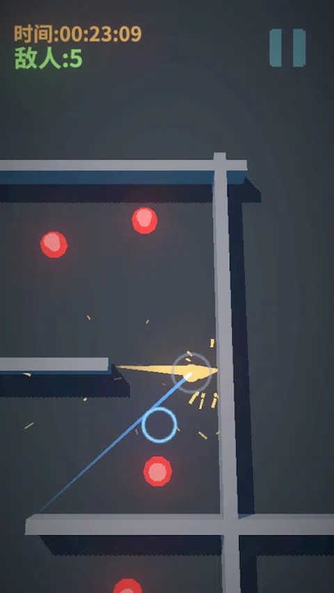 这是一款单指就能操作的游戏,在游戏中,你将控制一个高速移动的小球,躲避敌人的枪林弹雨,利用弹射击杀敌人。游戏中有无限制的子弹时间,你可以随时触发子弹时间来思考下一步的行动。游戏的目标很简单,消灭所有敌人