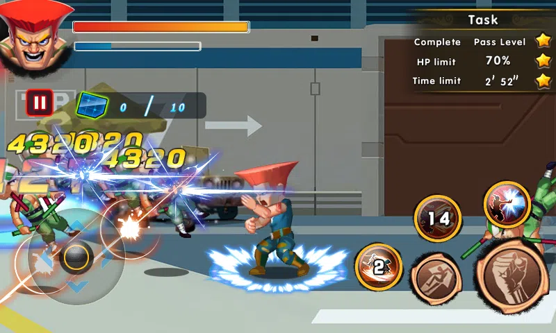 你准备好成为一名传奇的街头霸主,并秒杀所有的敌人,用格斗来阻止他们的连续攻击?这是一款行动战斗与角色扮演结合的游戏,“最强王者之战”让您感到激动人心的致命街头战斗!在这场致命的战斗游戏中,你需要的就是挑战自己,使用各种格斗术来打败你的敌人。打败他们,永远不要怜恤你的敌人! “最强王者之战”是致命街头战斗类型中最经典的免费游戏之一。你只要全力以赴的秒杀对手,找出弱点,研究你的对手的动作频率。你可以用功夫,mma,空手道,摔跤,拳击等各种武术动作。为荣耀而战!为你的骄傲而战!移动,闪避,打踢你的对手!你需要做的是收集破坏性武器和防御装备,然后击败所有的对手并打败他们!真正的英雄出生在致命的街头战斗中。感受到手中愤怒力量,打败所有的敌人。打败他们让你成为街头真正霸主时候到了! “最强王者之战”的特点: - 惊人的2D图形和逼真的战斗声音。 - 精彩的故事和有趣的游戏。 - 冒险和令人兴奋的游戏水平。 - 经典和炫酷的战斗效果。 - 破坏性武器和防御装备。 - 直观易操作的控制。 - 独特升级系统。 - 没有Wifi,没问题。 你必须躲避对手的打击和飞踢,然后抓住机会KO他们。游戏超级简单,玩家只需要使用虚拟操纵杆移动和其他三个按钮来释放破坏性和炫酷的技能组合。游戏为您提供了引人入胜的2D战斗体验,让您的命运完全掌握在您的手中。这个游戏会回想起你童年时代的街机游戏回忆。使用逼真的图形,经典游戏和简单的控制,您可以自由组合热血的特技打击来击败您的对手。你在等什么?来吧!享受“最强王者之战”! 精湛的场景,惊艳的战斗组合和华丽的特殊技能,下载“最强王者之战”,来挑战自己,易于操控的老式的街机FTG游戏。这是一个非常经典但令人上瘾的2D街机街头战斗游戏。如果你是街头战斗的粉丝,你绝对不能错过这个伟大的战斗游戏