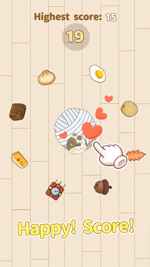 仓鼠大冒险,转盘里有各种食物,需要点击仓鼠才能吃,有炸弹的仓鼠是不允许吃的。