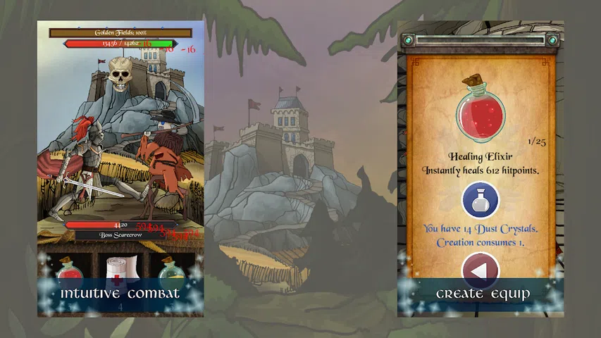 在“愤怒的传奇”中,您通过反复快速轻击或滑动屏幕来对抗有趣和疯狂的生物。游戏是直观的。你收集经验,创造装备,成长壮大。你可以掌握游戏吗? ►发现各个方面和令人兴奋的故事情节。 ►在直观的作战系统中与数十名神奇而有趣的动物进行战斗。 ►收集经验并增加您的技能。随时保存游戏进度。 战斗的起点始终在城堡。在城堡里,故事通过不同的NPC一步一步的推广。您可以在具有不同背景和敌人的5个区域中进步。进入下一个区域是通过击败前一个区域的老板敌人来解锁的。 可以重复播放区域,无限制地收集尘埃,粉尘晶体和Mojo。 任何生物中都有灰尘。它用于将玩家级别从1级增加到250级。 粉尘晶体是罕见的资源。他们可以在精英的敌人身上找到。粉尘晶体用于创造无尽的防御性物品,如治疗药水,绷带或解毒剂。 Mojo被发现在非常罕见的Mojo包中。 Mojo在有限的时间内增加玩家伤害。 另一种进步方式是解锁奖杯,产生背景关于每个生物的信息。 “愤怒传奇”免费下载,免费广告。你可以离线玩游戏。应用内购买可用于化妆品,如护甲和宠物,并增加损害。应用内购买并不是强制完成游戏。 记住开发商的承诺:对于每100000次下载,新区域和新敌人的新章节将被添加到游戏中