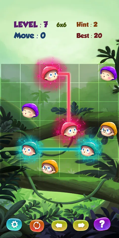 轻松连接可爱的年轻男孩蘑菇 与可爱的蘑菇一起玩耍,将它们连接起来进行 2 场比赛非常令人上瘾的休闲游戏,有无限的关卡,有六种有趣的游戏模式!滑动并找到连接 2 个相同颜色蘑菇之间的线的方法,这款具有挑战性的益智游戏具有令人兴奋的游戏玩法 怎么玩 拖动一条线或在两个相同颜色的蘑菇之间创建一条流来连接它们,但要注意,如果它们交叉或重叠,线就会断裂。将情侣蘑菇的所有颜色配对,以解决流程中的每个难题。如果卡在任何级别,请使用提示有很多不同的级别可以玩,玩得开心!