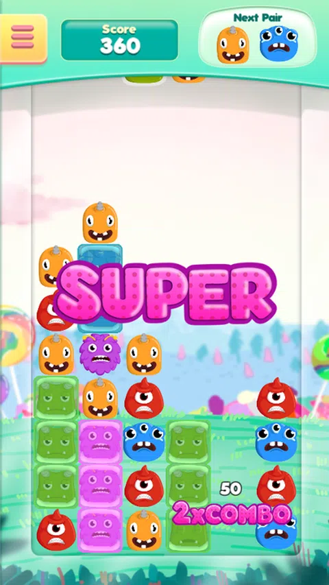 他们情绪化,可爱又美味!有时甚至很难记住他们的真实本性:他们是怪物!好的!但是他们被一个邪恶的巫师囚禁在一个魔法世界里,他们需要你的帮助才能逃脱!成对的怪物将从天而降,你的工作就是将其中四个或更多的怪物组合起来,让它们摆脱巫师的!您可以将它们向左、向右移动,甚至可以旋转它们。一旦释放,怪物会给你积分!如果您按顺序释放它们,它们会给您更多积分!但小心点!邪恶的巫师总是试图破坏你的计划!与您的朋友比较您的分数,并与世界上最可爱的小怪物一起享受这款美味的休闲四消游戏