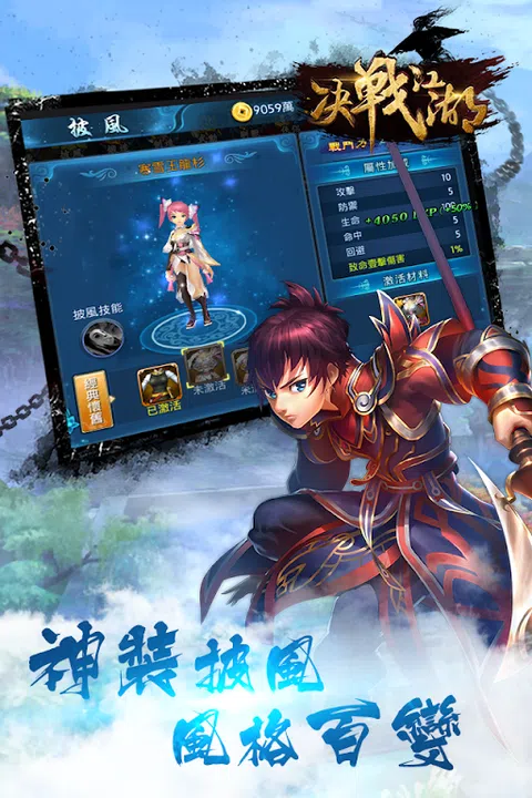 决战江湖是壹款Q版风格江湖武侠的MMORPG手游。采用Unity 3D技术,打造出华丽战斗场景。玩家通过挂机挑战世界BOSS,大量掉落各种宝石、精美道具、炫酷装备和技能书。华丽的技能释放,招式连招组合,天赋加点组成不同属性,给玩家带来多种对抗选择。故事主线以壹个初涉武林的萌新,因为壹件至强道具披风引来腥风血雨,在不停地厮杀中成长为壹个可以左右正邪势力的武林至尊。玩家选择加入正邪势力,与其他势力玩家不停的在对战中壹决雌雄,书剑江湖,笑意恩仇。 天下风云出我辈, 一入江湖岁月催; 皇图霸业谈笑中, 不胜人生一场醉。 ◎我们的职业 没有弱 只有操作 正邪对立,每种职业都有正邪之分,让你的选择不再单一。 剑意缥缈,虚实无间。剑招诡谲无人能挡。 —『剑士』 冲锋陷阵,横扫千军。破釜沉舟只为一战。 —『刀客』 枪出如龙,英气逼人。瞬间爆发秒杀敌人。 —『枪客』 心系天下,妙手回春。既能悬壶济世亦可覆手为雨。 —『医师』 ◎我们的时装 不只是外表 更是属性的加强 少侠,你是否厌倦了单一的造型,渴望改变。在这里,百变时装在向你招手,等你收藏。时装种类繁多,主要分为服装、武器、坐骑。每一件时装都具有它独有的魅力!复古时装带你回到武侠时代,现代潮流时装让你忘乎所以,武器时装让你焕然一新,尽显独特个性。除此之外还有各种炫酷坐骑时装,麒麟、灵狐、仙鹿伴你天涯。 ◎我们的玩法 别出花样 让你应接不暇 游戏为玩家提供了大量的活动,势力战、门派战、武林血战多种PK玩法任君挑选。正邪之争,势力之首,在势力战中玩家可以与敌对势力一决雌雄,这里没有门派差别,这里只有正邪之分,齐心协力,正邪势力等你参与。门派战是游戏中正邪两大对立陈营内的门派大战,正邪相互独立,唯一停留门派获胜。武林血战活动是玩家为独立个体的战争,在这里不分正邪,不分门派,只为争夺天下第一!强者为尊,胜者为王,快来成为这片江湖的主人吧! ◎我们的技能 你学的会 但你不一定玩得好 【攻击技能】 不同职业的攻击技能都不相同,每一次转职之后的攻击技能会得到大幅度提升,技能的加强需要消耗大量的历练值,不同的技能书和铜币。历练值可以通过日常历练和历练副本获得,而技能书只能通过打宝地图和商城和市场购买得到。 【辅助技能】 玩家在经历转职之后会开启新的辅助技能,跟攻击技能一样,也需要消耗大量的历练值,不同的技能书和铜币。辅助技能可以增加移速、效果抵抗、攻击加成等等。更多的技能等待你的挖掘。 【被动技能】 随着玩家等级提升,每次升级转职都会提供气功点数和新的天赋栏,天赋技能加点需要消耗气功点数。天赋技能栏中除了一转天赋只有两个之外,其他的天赋每栏都有三种,其中不同的加点会带来不同的效果,属性加成,被动技能效果等等。玩家拥有着足够的自由度,选择自己独特的加点方式来规划自己的成长路线。 【时装技能】 玩家每解锁一件时装,不仅会改变自己的造型尽显独特,还会带来专属的时装技能,在PK对决中大放光彩。 ◎我们游戏的姻缘 你随处可寻 但你是否珍惜 侠侣系统,花式婚戒,给少侠不同体验。亲,还感到孤单吗?站在巅峰渴望有人来陪伴吗?玩家在54级后就可以选择自己的结婚伴侣,只要一枚戒指就能像心仪的玩家进行求婚。去闯荡侠侣的世界,双方在互为侠侣后都能获得额外的属性加成,每天都有夫妻亲密互动。让游戏不再寂寞,还有等待什么,快来选择你的情缘侠侣。 你我相识于江湖,决战于江湖。你我亦敌亦友,相濡以沫不如相忘于江湖,让我们江湖再见