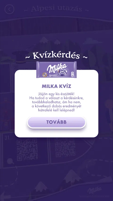 不远的地方,白雪皑皑的山脉轻轻高山lankákkal交融,有一个神话般的小镇,那里的居民迫不及待地参观! 您还可以得到移动互动társasjátékunkkal高山之旅,并品尝到甜美的紫色tejcsokisan BERGI生活!虽然在这个小镇充满柔情所有,不乏从增强现实得益于独特的技术为居民惊喜地从游戏世界中显示二维紫伯格退出! 你怎么玩? 1.确保手机有至少70%的填充。 2.启动游戏的正确游戏模式,触摸屏幕上用模辊,然后把你的脚步在董事会第一! 3.将使用我们的扫描领域,这(在屏幕中间从场定位代码)到达时,按照说明进行操作,准备一个惊喜:能够吸收电池寿命过他们中的一些! 4.在屏幕的左上角“后退”按钮,退出游戏从主菜单中的任意时间。 家庭游戏模式 寻找一块游戏,每个人都得到一个,然后将它们放置在开始字段(使用FIGURA,瓶盖,钱币或一块在家里的公寓之一的)!在游戏过程中,请确保您的木偶未覆盖的代码的领域