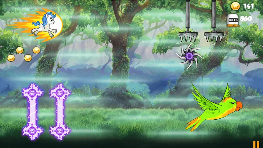 帮助我可爱的小独角兽冲过这片美丽的丛林,回到他在独角兽岛的家,帮助他进化成飞马,停止使用这个喷气背包,回到他在小马王国的公主身边。 怎么玩: - 点击屏幕让独角兽宝宝跳跃和飞翔。 - 逃跑并逃离魔法丛林以通过关卡。 特征: +独角兽和他可以骑乘的森林的美丽图片和动画。 +男孩和女孩都可以和家人一起玩毛茸茸的白色彩虹冲刺游戏。 我们希望您享受游戏的乐趣。 玩得开心!