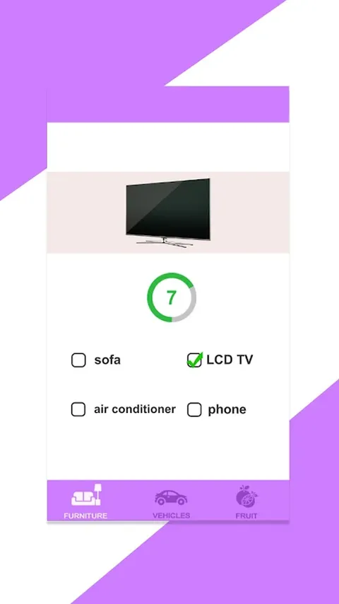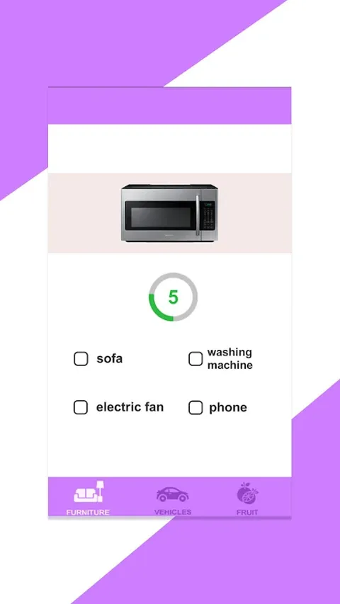 有趣的挑战,考验你的观察力和反应速度!每次游戏开始时,底部会显示一个带有多个选项的图片。您需要在倒计时结束之前快速选择正确的答案。游戏包括三个类别:家具、车辆和水果。每个问题都是与时间赛跑! ?游戏亮点? ? 快速反应:倒计时压力迫使你更快地识别和选择。 ?丰富的题库:图片类型多样,每次挑战都充满新鲜感。 ? 无限挑战:努力保持准确性并提高反应速度! 现在就开始这个有趣的认知挑战,感受丰富题库带来的考验吧!