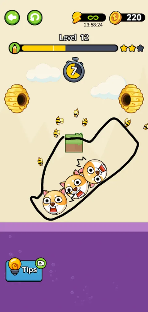 你能救狗吗??一群蜜蜂来了,只有你的智慧才能保护可爱的小狗!在这款休闲益智游戏中,您必须画线以保护狗免受伤害。简单而具有挑战性,这款游戏会让您时刻保持警惕,找到智胜蜜蜂的创造性方法。快速思考,更快绘制,并确保狗保持安全! ?有趣且易于玩:只需画一条线即可保护狗免受伤害。 ?具有挑战性但又令人放松:每个级别都提供一个平衡乐趣和挑战的独特谜题。 增加难度:随着您的进步,关卡会变得越来越难! ?解锁新关卡:通过关卡并解锁更具挑战性的谜题。 ?快速大脑锻炼:简短而引人入胜的谜题,随时激发您的思维。 提升您的创造力:通过绘制创意线条来保护狗,以自己的方式解决难题。 ?完美放松:享受轻松的益智游戏,同时锻炼您的思维。 立即下载并开始拯救狗!?准备好和 doge 一起玩了吗?立即下载“Save the Doge”,开始有趣且具有挑战性的益智冒险。保护可爱的小狗免受蜜蜂的侵害,探索多个关卡,并一路提高您的解谜技巧。不要等待,立即加入乐趣,成为终极狗保护者!