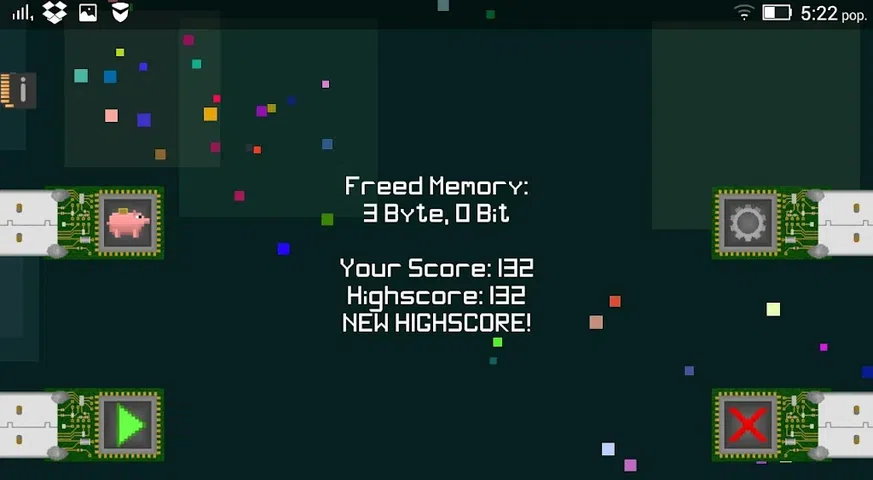 游戏: 通过在整个屏幕上滑动您的高级防病毒程序来删除受感染的代码块并分配它们的内存 在向病毒射击时。 升级,例如新武器、更好的特殊攻击或更吸引人的磁铁, 抵御病毒的时间更长,并提高你的高分。 您从一种武器开始,但您可以在商店中购买其他武器。 有些有子弹,造成更多伤害,有些只是以更快的频率射击或有多个射击方向。 删除一些受感染的代码块后,购买的武器将附加到您的高级防病毒程序中 不受他们的伤害。 每个被杀死的敌人都会掉落内存,玩家应该收集这些内存以购买一些新的升级并填充 特殊攻击的进度条。 这个被释放的记忆被磁铁吸引, 可以在商店升级。 您的特殊攻击(“清洁程序”)也可以在商店中升级。 这些升级不会仅以积极的方式影响您的特殊攻击: 你的特殊攻击越好,你必须收集更多的内存来填充进度条。 当心老板