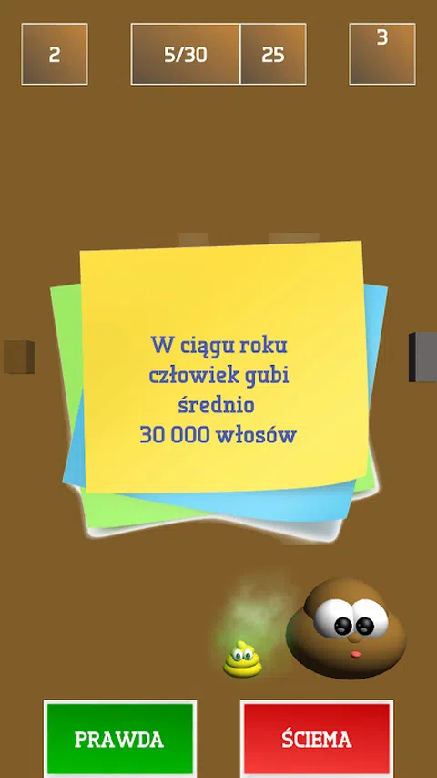 土豆会问问题,你会回答是真是假: - 他可以在飞机上吸他的屁股到厕所? - 舌头可能会在寒冷中冻到玻璃杯上? - 世界上最慢的动物是蜗牛? - 可乐可以用作除锈剂吗? 查看所有问题:) 明天,游戏将通过更多小游戏与 Potaty's Potato 进行扩展