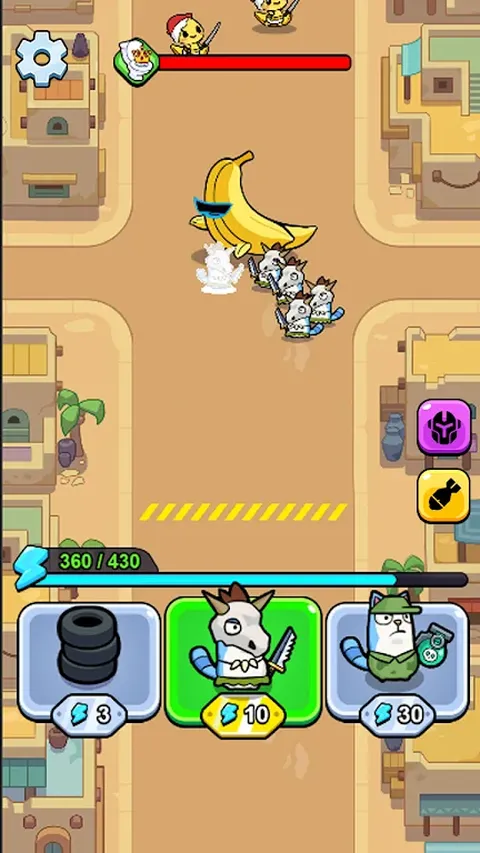 在这款惊心动魄的塔防策略游戏中,你将扮演一位睿智的指挥官,带领一群无所畏惧的猫战士,肩负着守卫街道的重任,誓要阻止邪恶的香蕉怪物肆虐。在街道上方,各种各样的怪物和挑战等待着你,还有一系列可怕的终极 BOSS 战,将考验你的智力和战略规划能力。 这不仅仅是一款简单的塔防游戏,而是一场智慧与勇气的考验,将你的战略眼光和应急反应能力挑战到极限。现在就拿起你的指挥棒,带领这些勇敢的猫咪,一起谱写守护街道、抵抗邪恶的传奇篇章!