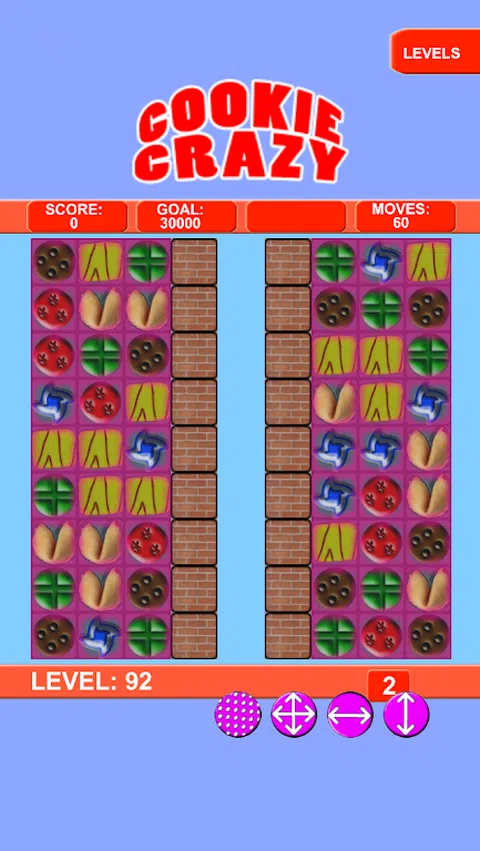 Cookie Crazy - 饼干带来的最大乐趣。 这是一款有趣的三消游戏。匹配三个或更多饼干即可得分并消除障碍。如果您喜欢其他三消游戏,例如《宝石迷阵》或《糖果粉碎传奇》,您一定会喜欢《Cookie Crazy》。 疯狂饼干的玩法很简单,就像其他三消游戏一样,连续滑动三块饼干即可消除饼干以及游戏板上的任何障碍物