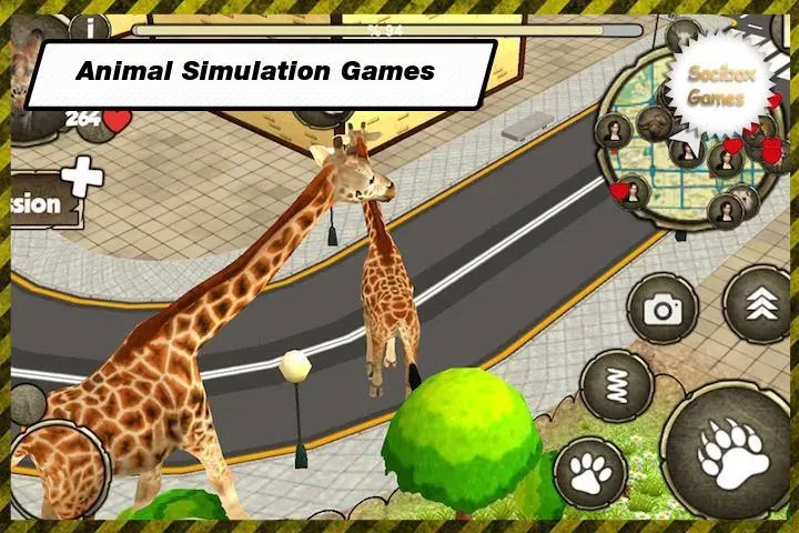 有动物在大城市。动物开始混乱。强拍弱的动物的动物。在大城市,你将管理一只长颈鹿。长颈鹿是有利的,对其他动物有很长的长度。您可以加入对长颈鹿模拟战斗。当心在城市的空旷的街道狮子狩猎。狮子会的攻击很残酷。大象是非常强大的动物,不应该让他们攻击你。 我们的任务是开发模拟游戏长颈鹿自己与其他敌对战兽。发展本身将增加点,你变得更强壮。当你不能再对强大的敌人更强大更有抵抗力。你已经达到了10级分,能够使用特殊攻击。狮子的爪子,你可以摆脱大象的树干