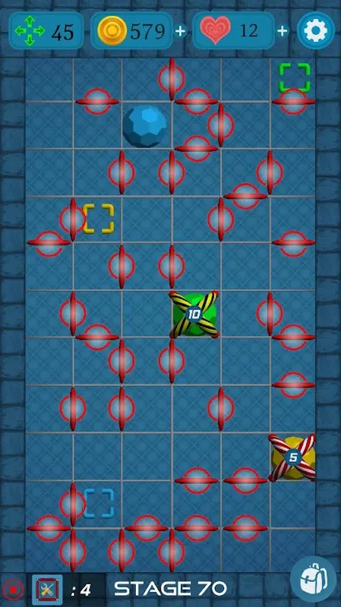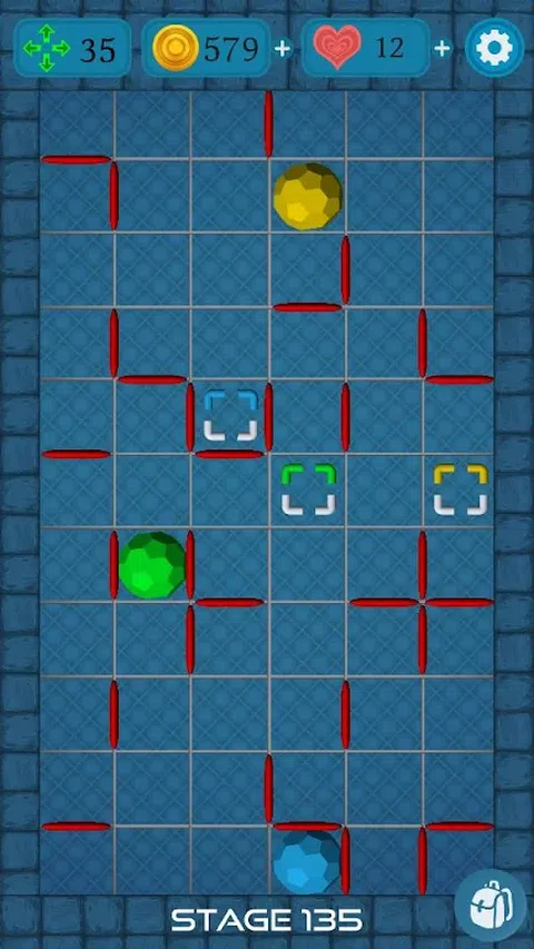 测试您的智力和注意力! 将球移动到自己的彩色门上! 移动越少,硬币越多! 您可以使用指示器查看路径