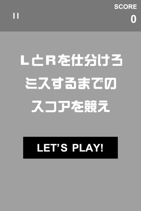 将 L 和 R 分为左和右! [玩法] 点击屏幕左侧将“L”向左移动, 点击屏幕右侧,将“R”排序到右侧。 [3种模式] ◆街机模式 争夺最高分,直到犯错为止。 ◆竞赛模式 争夺到达终点线所需的时间。 ◆时间攻击模式 30秒内争夺分数。如果你错过一次,游戏就结束了。一款炫酷时尚的简单休闲游戏! 这很简单,任何人都可以玩。以最高分挑战世界排名! *音乐合作 点击屏幕左侧的左侧“L”, 您可以点击屏幕右侧的“R”进行排序。[三种模式] ◆ 街机模式 操作简单,任何人都可以自由发挥。挑战世界排名中的最佳成绩! *音乐合作