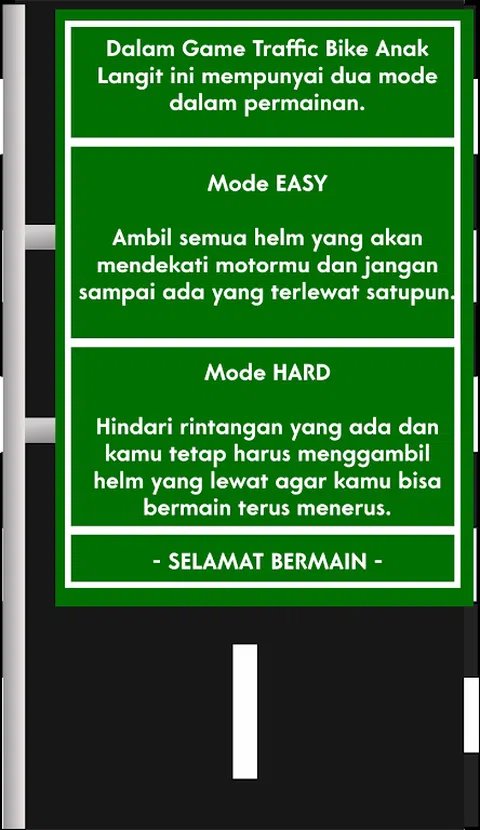 这是一款你可以比赛但要注意安全的游戏。您可以选择两种可用的游戏模式: *简单:带上所有接近您摩托车的头盔,不要错过任何一个。 *困难:避开现有障碍并继续收集头盔,不要遗漏任何东西。 玩得开心