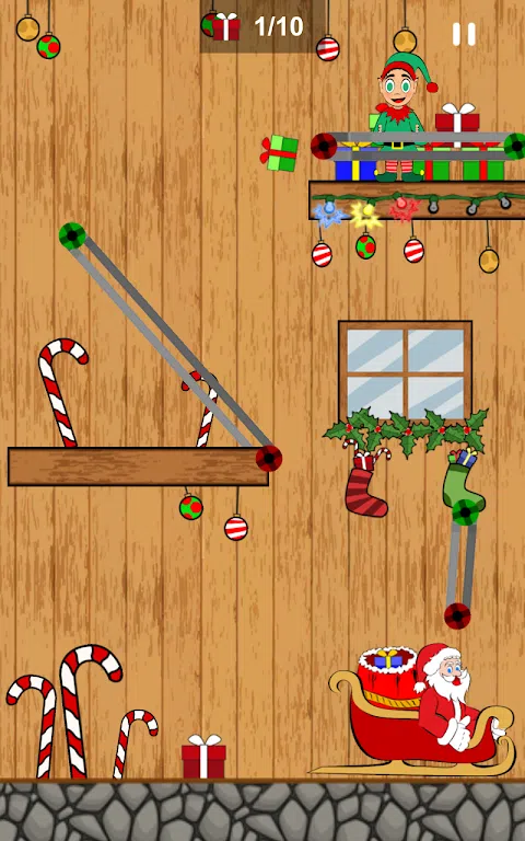 您必须绘制轨道以引导它们保持向圣诞老人移动所需的角度。您可以通过点击来移除您绘制的任何轨道。 使用您的导轨将礼物引导到圣诞老人的袋子里。对于每个级别,您都需要一定数量的礼物才能进入下一个级别