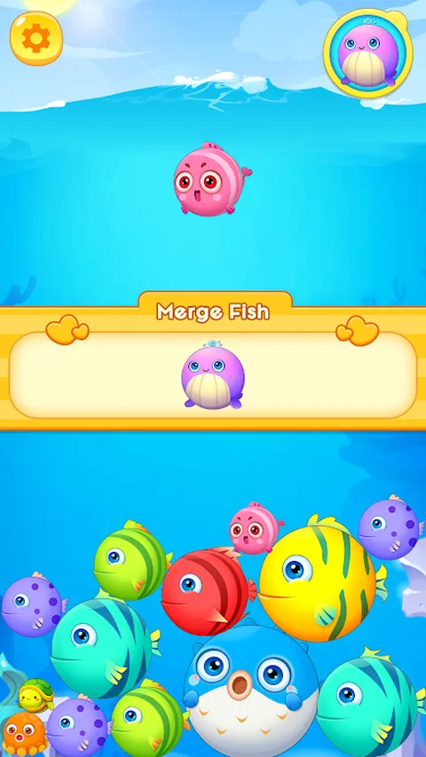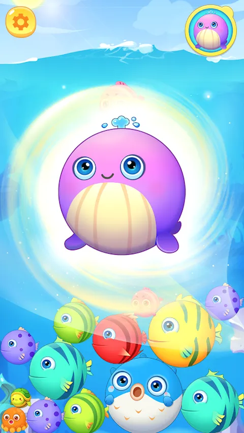 这是一款以蓝色鱼为主题的合成游戏,您需要将相同的鱼合并在一起,创造出更大的新鱼,以解锁更多神奇的鱼。