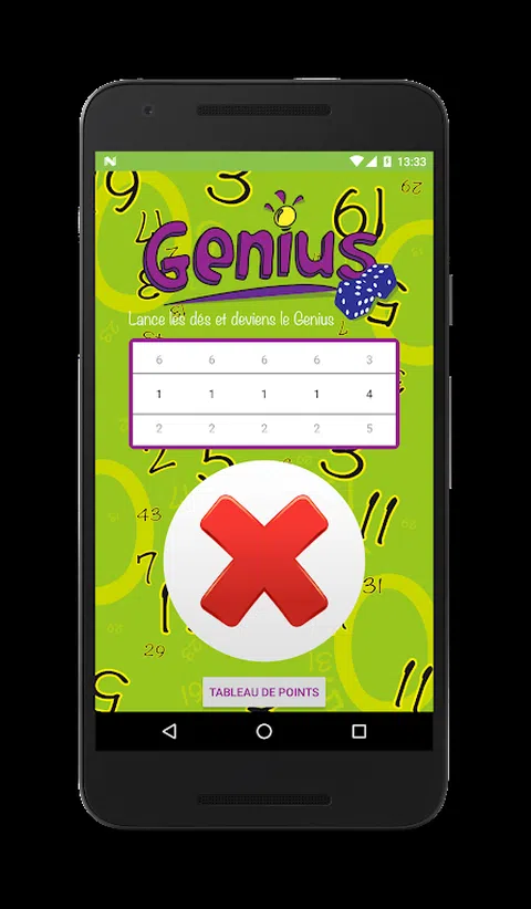 支持“天才”棋盘游戏申请。 通过用 1、2、3、4 或 5 个骰子获得最高分成为天才。 您必须制作一个素数才能掷出挑战骰子,这将改变游戏的进程。 删除其他玩家的高分以防止他们获胜,玩得开心。 一旦玩家完成他的网格,游戏就会结束!