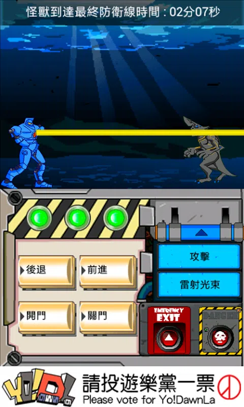 怪兽入侵地球,但是我们只剩下最后一台机器人可以应战了 赶快与你的同伴一起操作Jeaqer机器人打倒邪恶的怪兽吧 根据不同的行动抉择会影响最后的结局与评价,人物与场景的互动也会有些微的不同 打倒怪兽 . 或者搞笑!? 一切都在你的一念之中 如果有任何问题欢迎到我们Facebook上留言。 Facebook专页: 问题排解中心 官方网站: *加入Google社团获得新游戏测试资格* Down with the monster . or funny!? Everything you an idea among If you have any questions please leave a message on our Facebook