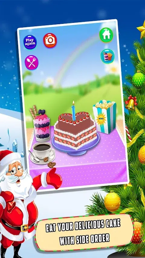 你好的孩子,每个孩子都等待冬季假期,庆祝新年和圣诞节。12 月是指所有的孩子们有很多与他们的朋友、 亲戚、 父母和祖父母的乐趣。所有学校季节性断后长时间单调的例行公事,每天去上学在同一学校的校车,听力老师都关门的同一份讲义,并尝试完成无聊的作业总是让孩子们生活无聊。 孩子们,在这里我们有一个有趣的游戏为你所有,移动游戏为孩子们专门其女孩游戏作为其制作的游戏和烹饪比赛。每个小女孩有烹饪发烧又想要像妈妈做饭,想做所有的事情,像妈妈一样。但是,在家里她不会做饭和做一些她喜欢的东西的机会。特别女孩想要煮圣诞及新年的庆祝活动。蛋糕在圣诞节那天是很特别的项目。没有圣诞蛋糕就没有圣诞节。所以这个圣诞蛋糕制作游戏会教你的女孩和孩子如何做圣诞蛋糕在圣诞节特别的日子。 这蛋糕和糖果的彻底改变游戏是非常友好和充满乐趣。各种有趣和令人兴奋的东西都在这烹饪比赛会给你刺激和令人愉快的感觉。 .在主屏幕中,还有一位烹饪大师、 明星厨师和小的学生想要学习结块制作和其他烹饪并制作食谱像面制造商、 汉堡制造商和披萨制造商的世界著名厨师。主要标题为孩子在不同的颜色,画的蛋糕制作播放按钮并点击玩玩的孩子在厨房发烧将进入会有不同的选择。有其他两个按钮更有趣,会发现我们其他烹饪、 制作,打扮和沙龙游戏。 另一个按钮,率我们会与我们分享您的点评,对这场比赛。它将帮助我们提高其质量,所以请必须审查制作游戏玩后的蛋糕。 . 在现场有两个选择。 1) 蛋糕制作 2) 蛋糕装饰。 在选择蛋糕制作,你将进入蛋糕面包店。在这里你将收集所有成分例如发酵粉、 挤压鸡蛋、 黄油、 糖、 牛奶。混合所有的他们,然后研磨所有成分。 . 接下来的场景将有要求选择你最喜爱的圣诞蛋糕形状。 . 在改造部分的最后一场,你会烤蛋糕。 . 蛋糕烤好了以后, 你会得到机会来装饰和打顶与不同的调料,像奶油,蛋糕草莓,颜色,蜡烛。 .最后一幕备好的蛋糕将准备服役与果汁和附加组件如更改背景、 茶、 咖啡、 甜甜圈、 棒棒糖、 冰淇淋。 它是所有关于蛋糕制作游戏。你会很喜欢的孩子。别忘了我们来改善它