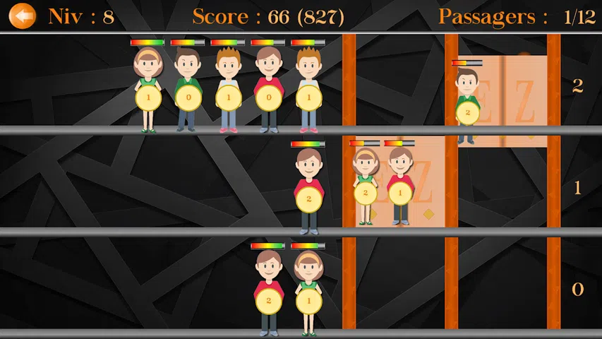 您的任务是通过让乘客乘坐一部或多部电梯将他们带到他们选择的楼层。确保尽快让他们到达那里,以防止他们变得不耐烦。 祝你好运