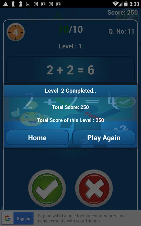 你能做快速的数学计算吗?让我们检查一下我们的数学计算速度。 “MATHS GENIUS”(1-6 年级数学游戏)将以有趣和互动的方式帮助您提高您的数学大脑计算能力。 Maths Genius (Maths Games) 包含 17000 多道简单的数学题。它旨在测试您的数学大脑计算能力。您的大脑计算和解决简单数学问题的速度有多快。解决数学问题很容易,但是每当我们在特定时间有各种各样的问题要解决时,那时我们的大脑就会犯更多错误。在 Maths Genius(1-6 年级的数学游戏)中,您将被问到简单的问题,例如 6 - 3 * (12 / 6)?您必须回答是/对或否/假,但玩家必须在 20 秒内解决 10 个问题。因此,让我们测试一下您解决数学问题的速度。如果您的选择是正确的,您将被问到下一个问题,但另一方面,如果您的选择是错误的,您的游戏将结束,您将看到正确的答案