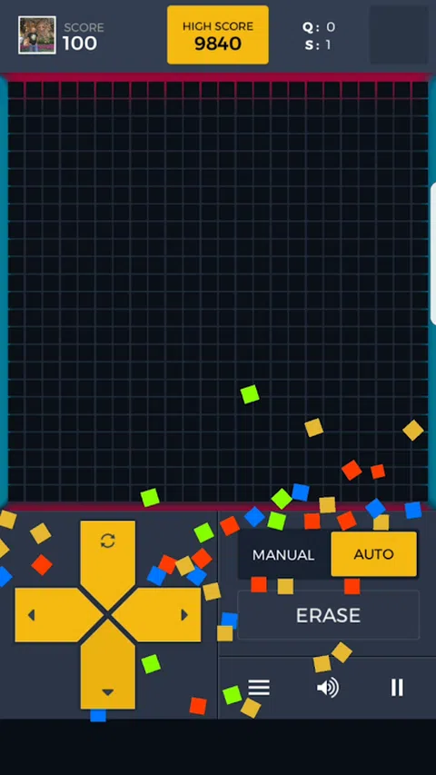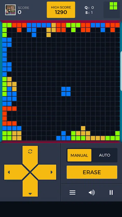 Qetris 是我们优秀的老游戏之一的现代化版本。乍一看,Qetris 会给人一种似曾相识的感觉,但等等,这是一种新的和意想不到的东西。 Qetris 是一款游戏,体验是趣味性的 4 倍,挑战性是 4 倍。 准备好成为你的董事会的完全所有者。 该游戏适合那些准备在排行榜上争夺第一名的人。 怎么玩? - 游戏有两种模式:“自动擦除模式”和“手动擦除模式”。 自动擦除模式:当线条被填满时,立方体被擦除。 您可以随意保存游戏多次。因此,您不会失去积分,并且可以随时转向游戏。 玩得开心