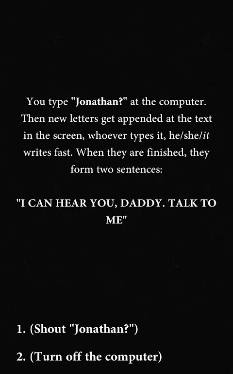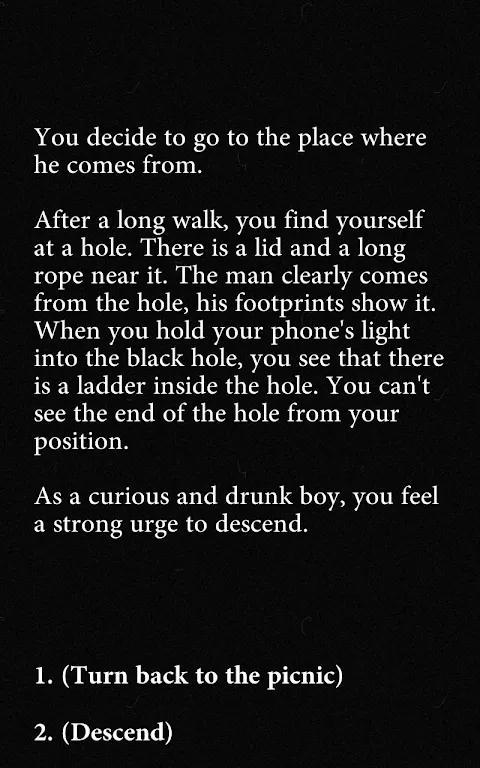 互动恐怖故事是 6 个恐怖故事的合集,您是其中的英雄。以选择你自己的冒险的风格;你做出选择,它们就会改变情节并给你带来不同的结局。你在这个故事中遇到各种邪恶实体(人类也是实体)。 - 《玩偶》故事的开头是一个经典的附身玩偶故事,但结局却不同。 《葬礼之后》是一个现代哥特式故事。您收到声称是您已故儿子(三天前去世)发送的消息。 在《水晶头骨》中,你是一位国王,他的女儿病了,快要死了。你听说了一个神奇的水晶头骨,并把它带到你的宫殿来治愈你生病的女儿。但你的男人警告你,头骨可能被了。 《地下邪恶》讲述的是发现潜伏在地下的难以想象的恐怖。 这次你是《水晶骷髅2》中的亿万富翁。你买了神秘的水晶头骨,它就会跟你说话。它说它会给你带来凡人无法企及的快乐,但它首先要求一些东西。 《疯狂无限循环》讲述了一个男人无论做什么都注定会在同一个早晨醒来的故事。你想死,但每次死的时候你都会在床上醒来。当你所做的一切都无关紧要时,你还能保持理智和道德吗? 现在可以打破这个故事的循环了。 - 所有的故事都有多个结局。 您可以按照自己的意愿以横向或纵向模式玩游戏。