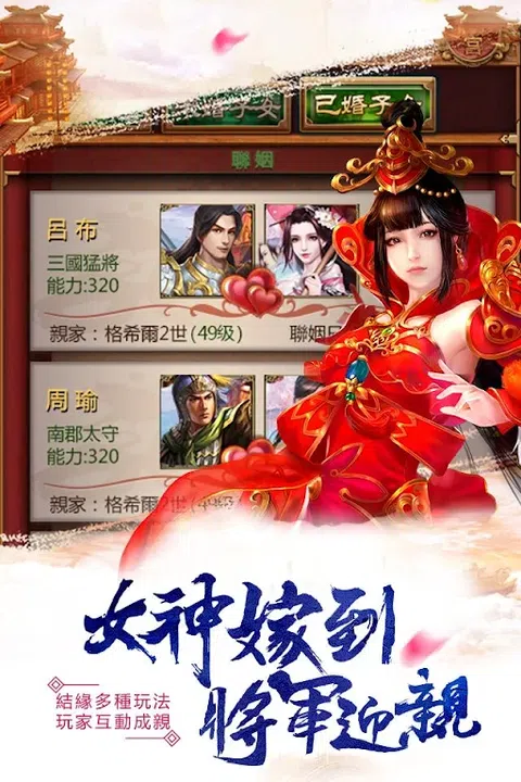 乱世三国,妳愿弃笔从戎,骁勇沙场,名振江东? 还是挥毫肆意,指点江山,成为霸主帐中第壹谋士? 无论是选择文官路线or武官路线,妳都将体会最精彩的人生! 全新升阶系统带来无限快感,乱世之中壹展抱负 - 平民升县令,县令升太守,最终当上丞相!步步为营,出人头地! - 作为文官,妳遭遇朝堂陷害,要如何反转局势,掌控权利? - 作为武将,妳遭遇属下背叛,单枪匹马如何杀出重围,重振旗鼓? 浪漫刺激后宫玩法,多少红颜伴妳策马! - 后宫200多位美人可选,更有激烈竞赛,能者夺得美人! - 升阶后,美人可选数随之增加;阶位越高,后宫越多! - 美人贪杯,根据不同的酒来攻略不同美人,把握好机会! 结亲玩法,选择心仪的对象,于乱世安家安心! - 乱世结缘不易,与美人的亲密度决定妳们合作能力总和,通过考验即可结亲! - 军帐中的婚礼浪漫,府宅里的婚礼正式,各种婚礼场景任选,看妳喜好! - 新婚之夜遭遇敌手挑衅,妳是把美人拱手让人,还是拼命壹战? 和美人生娃,萌娃养成计划! - 妳的后代会是壹方霸主,还是无名平民?妳的地位决定了娃的出身! - 在霸主之战中,如果失败,妳将失去抚养娃的能力,这时妳将如何安置萌娃? - 在霸主之战中,如果成功,妳将获得敌手天赋异禀的孩子。妳选择悉心培养,还是除掉后患? - 养娃之路不易,让妳的后代安稳度日,还是继续妳未完的大业? 三国霸业等妳来经营