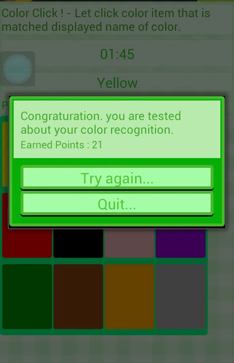 一款让你在3分钟内测试你的颜色识别能力的休闲游戏。玩家必须点击与显示颜色名称相匹配的色块。这个游戏的目的是测试你找到色块并点击它的速度。让我们尝试一下这个简单的游戏并享受它吧