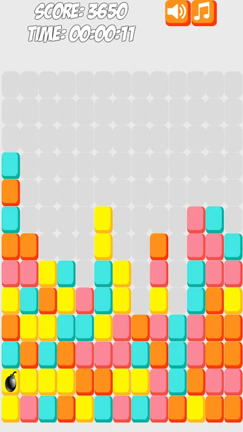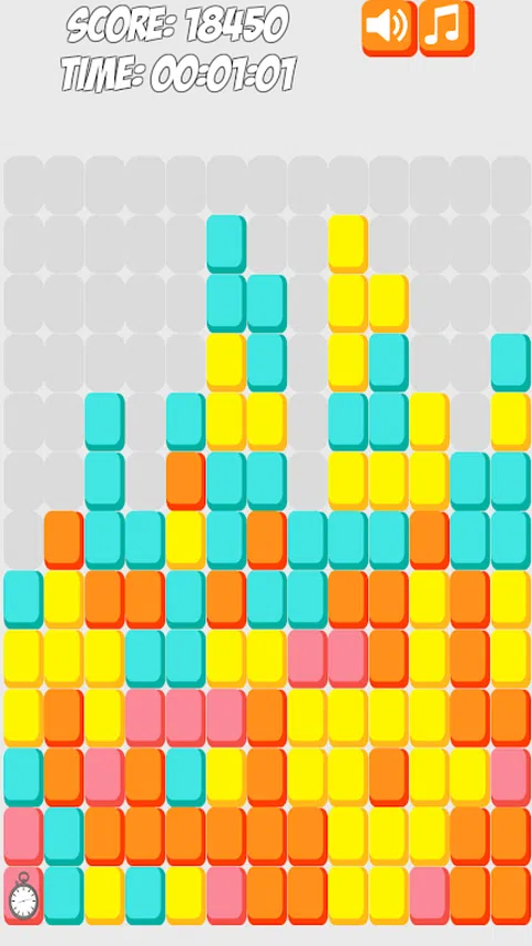 该游戏的特点是彩色的立方体线条不断向上移动,您必须压碎立方体,以免它们撞到顶部。 您可以点击立方体来摧毁它们。至少 2 个相同颜色的立方体应该彼此相邻才能被摧毁。单个立方体不能被破坏。 一些特殊的能量 ups 也可以弹出立方体,您可以粉碎这些立方体以使用这些能量。 其中一些能量提升包括阻止新积木弹出,这就是时间停止。另一个可以破坏行和列中所有相同颜色的块。无论颜色是什么,炸弹加电都会从每一侧摧毁相邻的砖块。一次加电会摧毁它下面的一条线