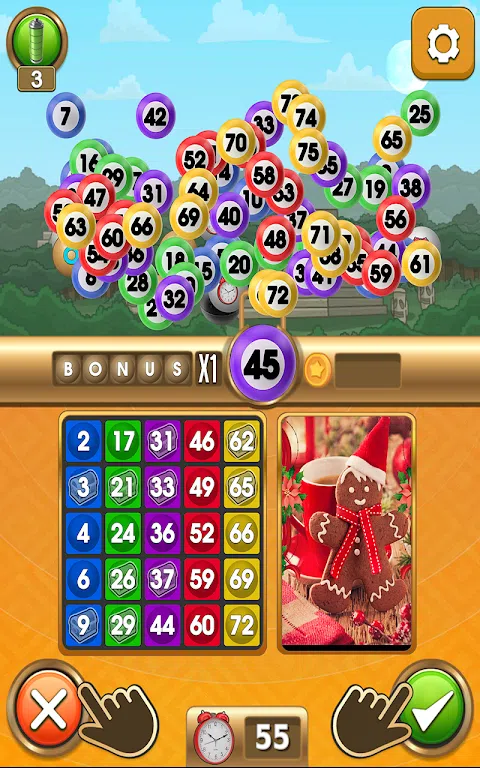礼物是 通过我们最喜欢的节日游戏的每个级别前进,庆祝圣诞节的精神。观看圣诞树灯在炉边的光芒中闪闪发光。在每个假日季节场景中挑选您最喜欢的圣诞树装饰品和圣诞装饰品。观看圣诞树顶部的星星闪闪发光。圣诞老人、他的精灵和雪人 Frosty 将在这款舒适的圣诞游戏的每个有趣关卡中帮助您精神焕发。从制作圣诞愿望清单中休息一下。您一定会将此差异游戏的圣诞游戏添加到您最喜欢的节日传统列表中! 游戏规则非常简单:数字会出现,您需要确定数字是否在您的宾果游戏卡上。尽快做出决定,因为我们的超级宾果游戏时间有限。完成行或所有四个角以获得积分。 赢得我们的宾果闪电战需要什么?您需要快速准确。准确性非常重要,因为如果您犯了错误,这个宾果游戏会扣除您的时间。这确实是一款令人兴奋的速度游戏和数字游戏。 不用担心!我们新的宾果游戏将帮助您获得更多金币!我们有特殊的道具,例如时间延长器和分数倍增器。您还可以触发自动播放,让这款宾果 bash 游戏自动为您标记卡片。 ★ BLITZ BINGO 主要特点: ★ - 每个人都喜欢的令人上瘾的经典宾果游戏。 - 简单的数字游戏,很难赢。 - 具有挑战性的快节奏游戏,需要准确性和速度。 - 当您不知所措时,通电和自动播放可帮助您完成宾果游戏。 - 收集一定数量的硬币后解锁美丽的图像