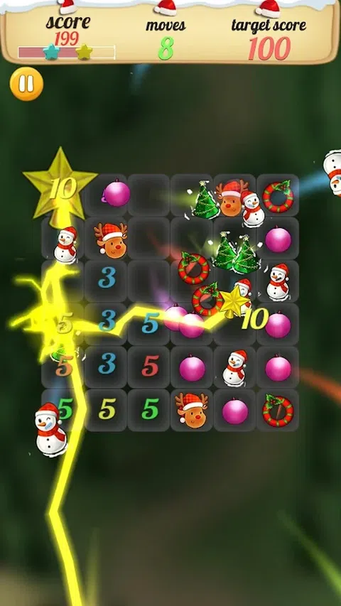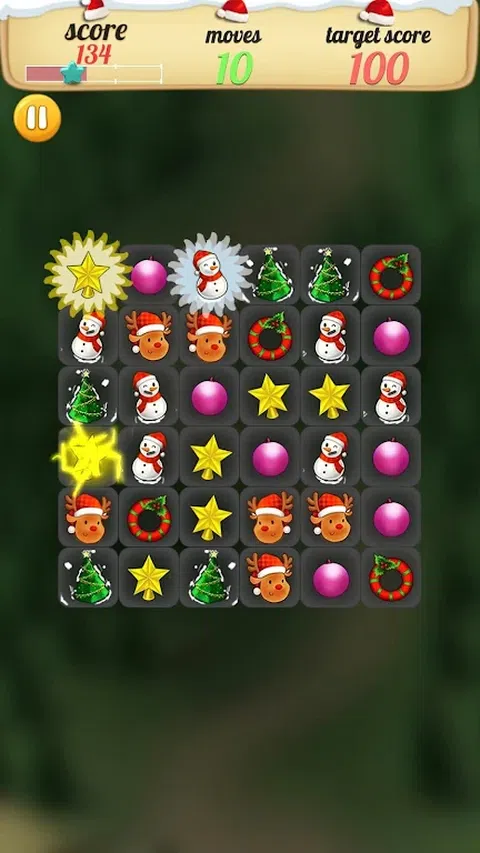 Christmas Crush!最火的消除类游戏结合圣诞元素重磅来袭!萌萌的圣诞老人、可爱的鲁道夫、五彩缤纷的圣诞礼物…都在等你来消除哦!是消磨时间休闲娱乐的不二选择!好玩到停不下来! 【玩法介绍】 匹配3个及以上相同元素即可消除,消除元素越多,得到的分数就会越多,还有机会生成不同的特效。 需要在规定的步数内达到规定分数,但不同于其他同类游戏,可以在达成分数要求后继续达到更高分数哦