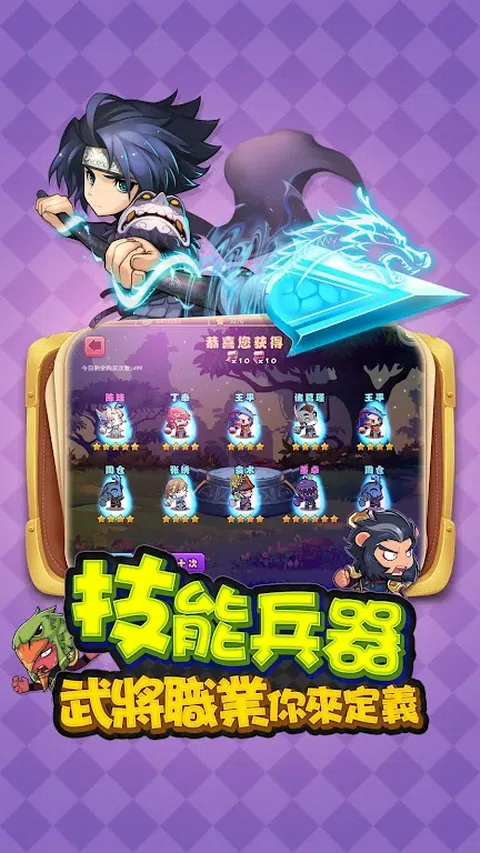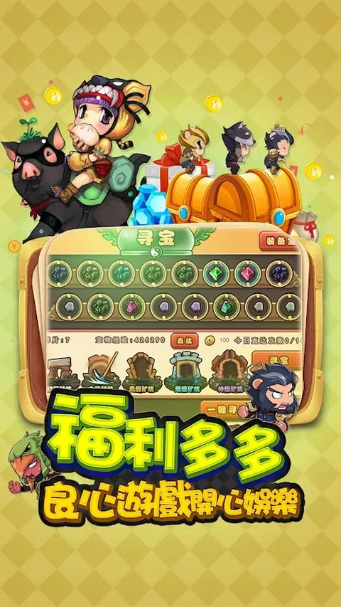 划时代的超逗趣RPG手游大作,颠覆全人类三观认知! 选择的五大理由: 一、正宗摸金盗墓,不再纸上谈兵,深入军团迷宫亲自探墓倒斗! 二、5000万点击量超人气同名动画改编,原班人马配音原汁原味还原经典! 三、鬼畜暴走全明星献声献色,张全蛋、王尼玛、Ladybeard、葛平倾情参演! 四、颜值超高的三国武将,超激萌、超恶搞、超脑洞演绎爆笑三国! 五、闻所未闻的可定制手游,每月定制武器:神烦狗道哥、贱萌小黄人、FFF烧死异性恋… 游戏玩法特色: 【变身摸金校尉,亲身参与探墓盗斗】 人点烛,怪自现!全新探险玩法军团迷宫震撼上线,点蜡烛,探宝穴,杀粽子,拿奖励。 逗趣的摸金玩法,刺激的杀怪挑战,深入黑黢黢的迷宫禁地,寻找不为人知的神秘宝藏! 【超高自由度,武将定位随你高兴】 武将职业自由组合,颠覆你对武将定位刻板印象。玩家可以通过给武将配备不同的武器来完全改变他的职业,想让“神医”华陀当作队上的坦就让他舞大刀,想要“战神”吕布做为队上补师就给个魔法球,所有决定权全在玩家手上! 【武器太傲娇,打谁奶谁我来定】 到底是宝剑配英雄,还是英雄配宝剑?颠覆武器只是装备的观念,给每种武器赋予相应特殊技能,武将需要通过装备武器来获得该武器技能。譬如只会鲁莽进攻的张飞装上防御型武器,就可额外获得回血技能变得更耐抗! 【微手动操作,你打我一拳我还你三脚】 游戏主打“你打我一拳,我还你三脚”的无差别实时大乱斗,并以半自动技能的管道进行操作!引人入胜的剧情,华丽的画面,调整武将阵型,施放君主技能,考验各位主公的临场反应及策略能力