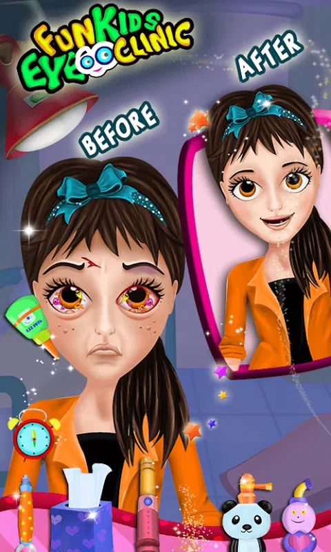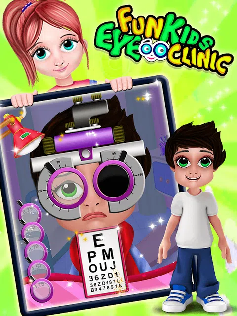 你是一名专业眼科医生,你遇到了很多患有不同眼部问题的初级患者。你的工作是治愈这些无辜的眼睛,帮助他们拥有清晰的视力。这一点都不无聊。作为一名眼科医生,你既要为小天使们治病,又要帮助他们打起精神,玩得开心。在眼科诊所,孩子们可能会害怕,但我们相信您可以小心应对。毕竟,他们的健康和治愈的视力才是最重要的。所有这一切都发生在 Fun Kids Eye Doctor Clinic。 Fun Kids Eye Doctor Clinic 为每位患者提供不同的医疗、程序和活动。你必须检查他们是否有完美的视力、色盲、眼睛受伤、过敏和许多其他问题。 表皮眼部护理: 深眼部治疗: 在此治疗中,请确保您消除了眼睛深处的内部问题。滴眼药水,吸出多余的液体,必要时使用激光,吹掉眼睛里的所有异物。 检查视觉活动: 现在检查他们的视力是否清晰。让您的患者坐在机器前,让他们阅读墙上的字母。在一只眼睛上戴上不同的镜片,而另一只眼睛则闭上。查看哪种镜头或瞄准器版本似乎适合视觉清晰度。对另一只眼睛重复此过程。 近视测试: 在此测试中,检查患者的近视是否足够好。病人必须说出墙上 F 的方向。百分比越高,视力越好。 设备检查: 检查眼睛的对齐方式,确保它们彼此同步。测试是在机器上完成的,您需要是这方面的专家。 Cevic盲测: 这是检查患者色盲的最终测试。该测试确保患者具有适当的色彩平衡,并且他们可以看穿并区分不同的颜色组。 你还在等什么?下载这个眼科医生诊所游戏并开始帮助您的小眼科患者