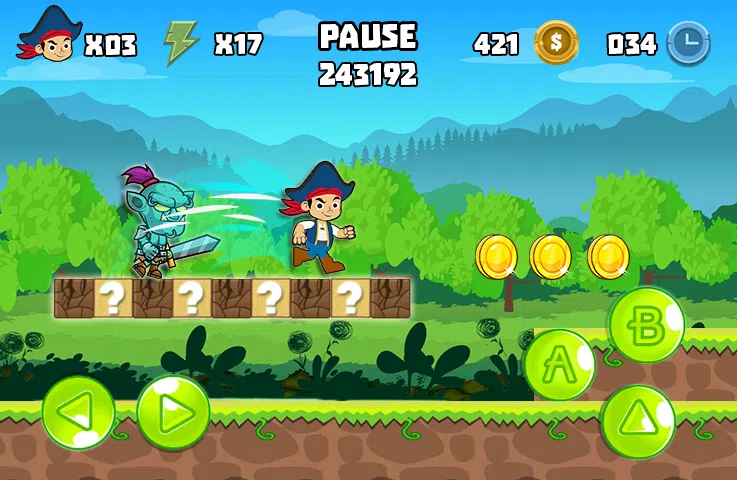Jake And The Pirates 正在进入冒险 2D 平台游戏。 如此多的威胁正在等待丛林通过并运行到热丛林中的目标世界。跳跃,或者使用武器,杰克可以做任何事情来杀死怪物。 您将与蘑菇一起享受充满危险的冒险。游戏在我们构建的每个关卡中都有很多陷阱、怪物和意外情况。 杰克和海盗特点: • 沿途收集硬币。 • 发现4 个不同的世界。 • 44 个难度增加的杠杆。 • 具有精美图形和鲜艳色彩的丛林世界。 • 要面对更危险的敌人。 • 上瘾更多的通电和简单的游戏。 如何玩杰克和海盗: • 使用按钮跳跃、移动和射击 • 在盒子里找到武器 • 点击左/右移动。 • 跳跃使敌人崩溃。 •吃花射击敌人。 • 收集所有硬币和奖励物品以获得更多积分并在商店购买额外物品。 我们希望我们所有的玩家玩得开心,请评价并非常感谢您的游戏! 现在播放并享受杰克和海盗