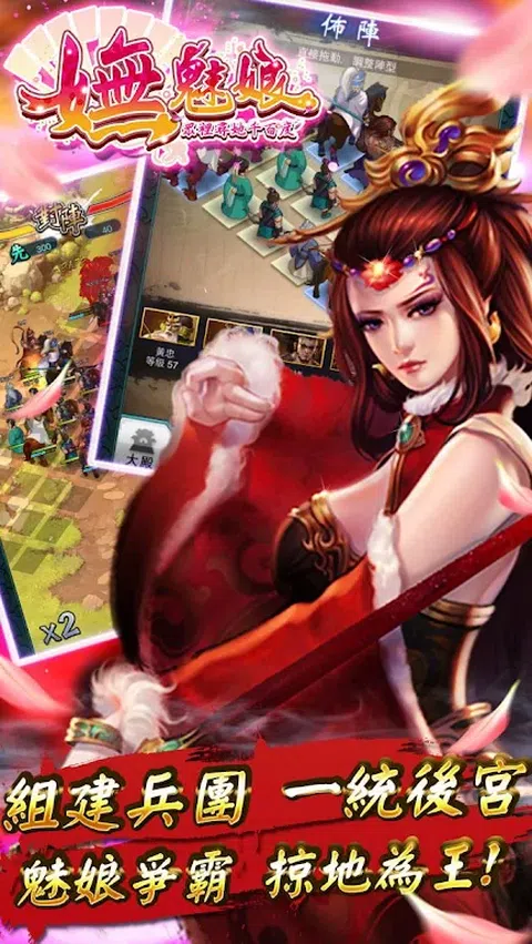 美艳动人的倩影,掌控乱世的权欲,《妩魅娘》即可实现你的渴望! 【霸主觉醒! 】享受“醒掌天下权,醉卧美人膝”的游戏快感。 【铁血柔情! 】穿越千载时空,征战、开国、平天下,邂逅、柔情、醉享群姝。 【风华绝代! 】古韵写真唯美画风,尽显千年风流人物。 【游戏特色】 ●『百姬缭乱时空,收服她们为你而战! 』 穿越春秋、楚汉、三国、隋唐五千年的历史,貂蝉、蔡文姬、武媚娘、王昭君…千古美人为你而战!当然游戏内绝对少不了“保护”女将的男性将军,项羽、马超、吕布、李世民等英雄豪杰,通通归于麾下为你所用。 ●『妩媚武将助阵,破阵不费吹灰之力』 还原真实古代冷兵器交锋场面,骑兵突袭、步兵厮杀、弓兵万箭齐发;多兵种协作破敌,统帅三军,在战场上你就是。 ●『三大PVP玩法,男女混战激情爆表』 问鼎天下、演武夺帅、鏖战群雄,三大PVP玩法,可单挑可群战,男女大混战激情爆表~ 如果你没试过,就还不算感受到《妩魅娘》的魅力所在!快来一键激战吧 ●『组建兵团、一统后宫,魅娘争霸、掠地为王! 』 可以通过晋升、升级、兵种升星等培育你的武将战力,38种强悍兵种,超2000种战斗阵型,领兵打仗更加得心应手! ●『古韵唯美画风,呈现千古历史名将! 』 获得武将活动方式众多,绝世名将免费抽取,积分兑换,副本掉落等,还有强悍兵种和元宝道具均可通过副本获得,好康不停,福利多多。 美女如云,猛将集结