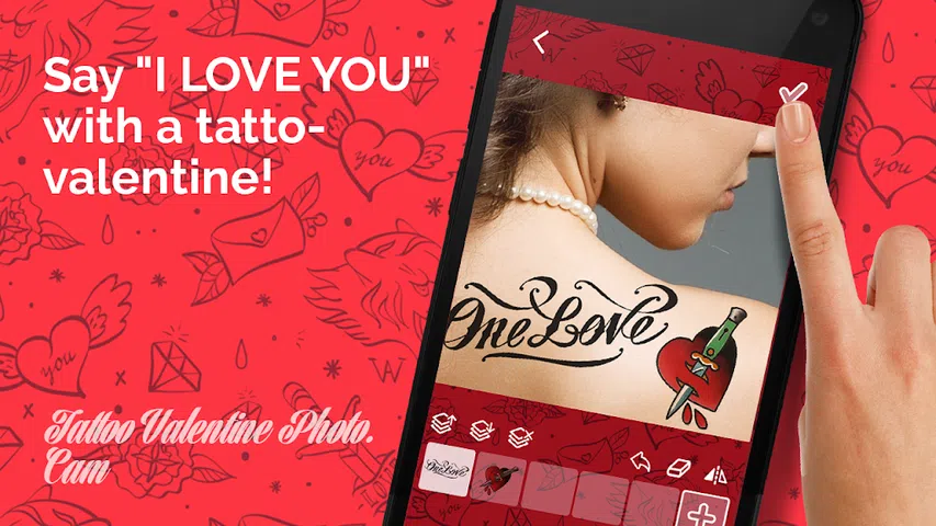 纹身的情人的照片 卡姆-做一个纹身在你的身体photographies为情人节! 用摄像机! 厌倦了自情人节礼物的明信片吗? 让一个爱上的纹身-情人节有关的照片! 告诉你的女朋友或男朋友对你的感觉跟一个纹身-情人节! 直接摄像机自己射击和地方上的纹身! 选择爱的标志和信号接受和发送情人节对你的爱人! 纹身的情人节礼物来没有痛苦和100%安全的! 指示: 1. 选择的照片画廊或是利用摄影机拍了一张 2. 选择一个纹身-情人节你想让你的身体 3. 变革的规模、轮流选择的透明度调整的纹身-情人节你想要创造自己的设计风格 4. 分享你的纹身-情人的照片和朋友们在社会网络的