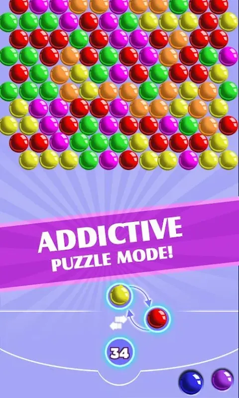 超级泡泡射手 超级益智模式与新的惊人之谜的水平和权力的企业!自街机的开始,这场比赛被播放次数最多的泡泡射击游戏。这个泡沫的射手版给人以拖动手指移动十字线(目标)和瞄准,然后当你抬起手指泡沫就会出手充分的经验。怎么玩拖动手指使用激光瞄准器,并精确瞄准同色相配弹出至少三个泡泡!你有有限的拍摄与赢得每个级别有趣和令人上瘾的游戏,娱乐为一体的家庭