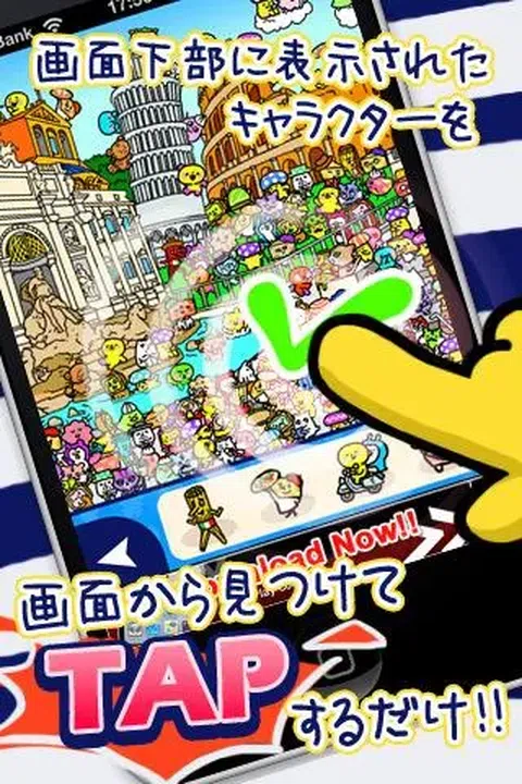 ★☆限时优惠!自由的! ☆★ 可爱的角色在哪里? 角色隐藏在世界各地,包括京都、冲绳、意大利、、泰国和印度! 寻找角色并征服世界! 【怎么玩】 只需在屏幕上找到并点击与屏幕底部显示的字符相同的字符。 ☆ 特点 ☆ - 很多可爱的角色! - 一个又一个新关卡! - 舞台遍及全球! - 有趣的音乐! - 直观的游戏,简单的控制! - 没有时间限制或技巧判断