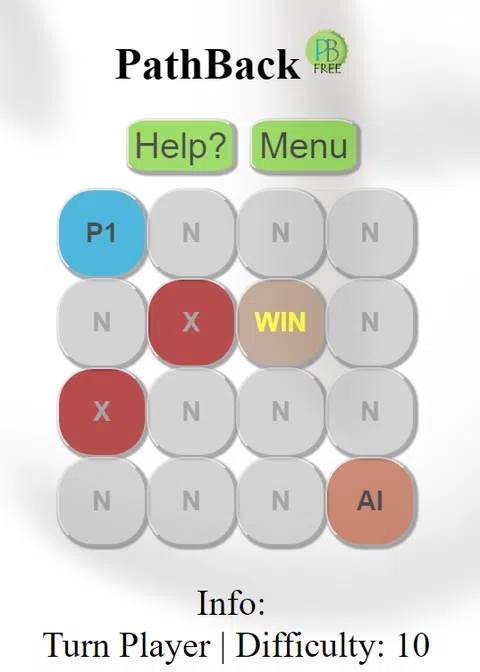 PathBack 是一种战术脑筋急转弯,您可以在其中将相邻的字段涂成蓝色,同时智能的人工对手会试图超越您。 您可以在另一个蓝色方块的上方、下方或右侧“着色”。 你的对手,一个聪明的人工智能,在你的移动中越来越好地预测每一个更高的难度,但他也只能在三个方向(镜像)去填充中性瓷砖。 您通过绘制与对手一样多或更多的瓷砖来赢得一轮。 例外地,通过从左到右的方法,您可以为罕见的“获胜牌”着色。 你达到什么难度? 注意:使用 PathBack 免费版,您可以在 25 个方块的场地上玩难度最高为 12 的游戏