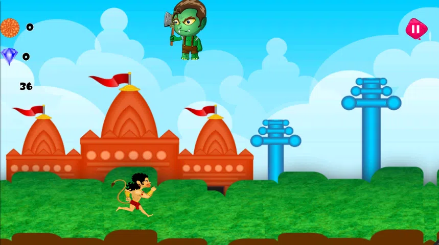 在罗摩衍那,兰卡甘是一个场景。其中一个角色是他去 Ashok Vatika 寻找水果和其他可食用的东西,但兰帕蒂的士兵试图逮捕他。然后哈努曼跑跳跳躲士兵并找到水果。在此哈努曼领主前往兰卡帝国寻找玛塔西塔。在兰卡逗留期间,他驾驶了许多角色。斯里兰卡的哈努曼仅在 Google Play 商店对您免费。该游戏占用的安卓手机内存非常少,也不会影响手机的正常运行。赶快!下载,播放和享受在兰卡的哈努曼你会非常喜欢在兰卡玩这个哈努曼游戏。只需点击屏幕上跳跃哈努曼从他的路上像火,水,魔鬼,士兵等障碍逃生。收集更多的laddu作为水果得分高
