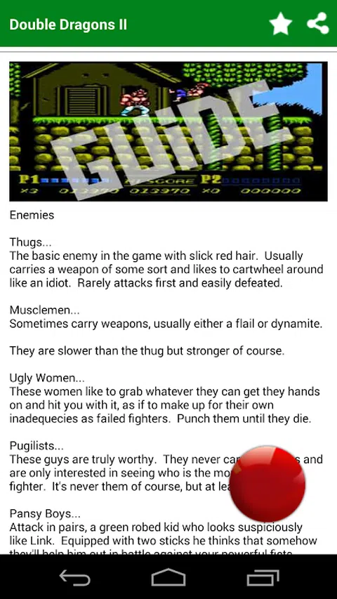 “准备以前所未有的方式击败对手。” 图形 [8/10] 当多个敌人出现在屏幕上时,精灵仍然会闪烁,当您试图打某人的脸时,这可能会很麻烦。有时你会在某事的侧面出现故障,这可能既奇怪又不寻常。大多数敌人的细节都很明显,但看起来脸部往往会被遮住,所以没有真正的面部表情。但是,帧率非常流畅,您不必担心撕裂和混蛋的战斗动画。在大多数情况下,Double Dragon II 带回了我们在大多数任天堂游戏中寻找的令人难忘且色彩丰富的图形