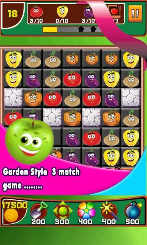 Farm Garden Hero 是 google play 中最有趣、最神奇的三消游戏。你的目标是切换和匹配 3 个或更多相同的作物来得分。所有热爱三消游戏的人,一定要玩这款具有惊人图形和动画的最吸引人的游戏。当您在给定的目标移动中得分时,该游戏会为您提供多种力量助推器,例如锤子、魔法、炸弹等。有节奏的音乐和闪亮的动画使该游戏更加有趣和有趣。在游戏中玩不同难度和挑战性的关卡,但请记住每一关都和上一关一样具有挑战性。因此,让我们玩并享受这个激动人心的游戏吧! 怎么玩? 1.切换并匹配3个或更多相同的相同作物得分。 2.匹配作物直到得分目标。 3. 通过收集坚韧级别的硬币来为功率助推器充电。 锤子:摧毁一件物品。 行:销毁一行和一列项目。 颜色:销毁相同类型的项目。 魔法:移动时拖动可增加 5 步。 炸弹:摧毁 3x3 件物品。 特征: • 完全免费且有趣的游戏。 • 有节奏的音乐和闪闪发光的动画。 • 针对智能手机和平板电脑进行了优化。 • 提高解决问题的技巧。 • 体积小,易于下载