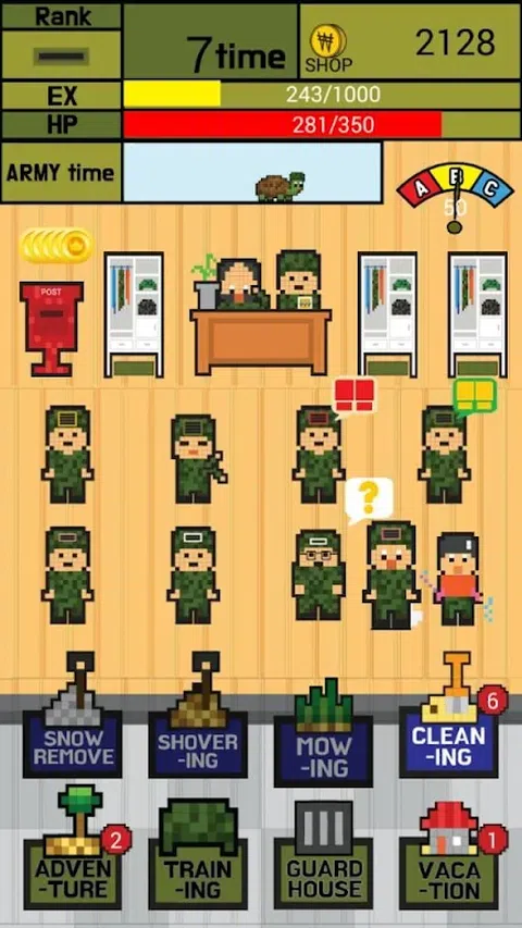 在军队中生存是培养士兵的游戏。 这几乎是零现实。但你可以很容易地享受它,而且非常有趣! 即使它是免费下载!只包含很少的应用内购买和广告。 即使没有互联网连接,您也可以享受它。 军队, 士兵, 免费游戏, 免费上网, 有趣的游戏, 简单的游戏, 有趣的游戏, 休闲游戏 军队对我们和平的生活来说是无价的。 让我们在游戏中享受军队生活吧!