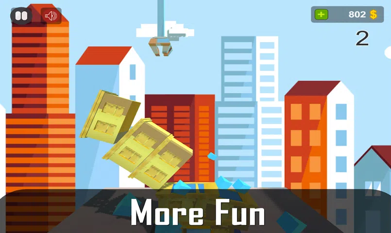 曾经尝试过构建一些东西吗?你会喜欢在这个新游戏中建造这座城市。您必须通过建造建筑物来建造城市,并尽可能高地建造。尝试通过构建尽可能多的块到达顶部。您必须通过将块彼此叠放来构建。尽量平衡,否则总塔会倒塌。 您将在这款游戏中兴奋不已,同时随心所欲地建造城市。您有不同的模式可供选择,其中少数是免费的,少数是锁定的。您可以通过应用内购买解锁这些模式