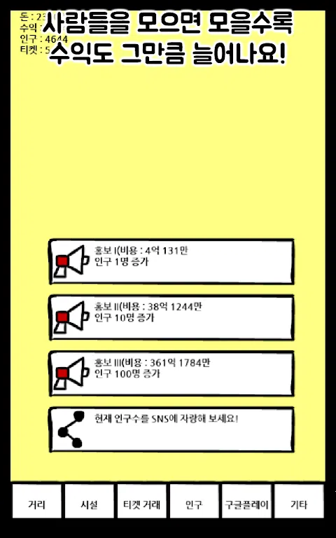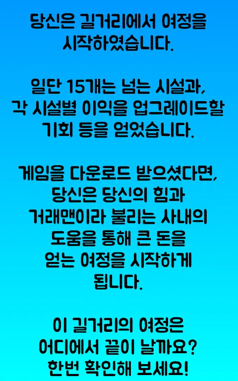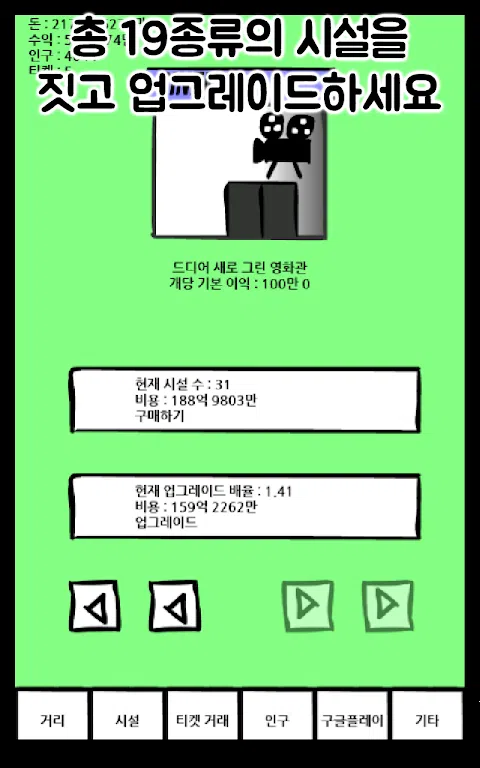 注意:如果您有任何问题,请随时发表评论!我们将以最大的诚意回答您。 街头崛起又回来了!即使我想更新,我也不能,所以我做了一个新的,然后回来了! - 这一次,小费的钱真的飞了!通过在它们消失之前触摸它们来获得尽可能多的提示! - 现在您可以根据需要直接增加人口!人越多,你得到的钱就越多! - 从前作的设施到对前作稍作修改的设施,再到新绘制的设施,设施更加多样化! - 我回来的难度更大。现在您不必像以前那样在不到 10 分钟的时间内购买所有东西并用完所有东西! - ↑我说了,但我又买了所有的设施。首先,这次我不会犯自己阻止更新的错误。我再说一遍,因为它很重要。 - 现在你可以看到结局了! (注意:你需要以光为单位存钱。这是第一个版本,所以不确定你是否能赚到那么多) 警告 - 所有按钮在按下时立即激活。按压时要小心。 - 表示数字时,由于使用了不表示小于设定位数的方法,因此可能以最小位数为单位再增加或减少一个。 - 截图为初始版本,部分价格低于实际播放价格。我被告知在上一场比赛中我在几分钟内醒来,所以这是为了防止同样的事情发生。对不起。 - 截图为初始版本,部分价格低于实际播放价格。我被告知在上一场比赛中我在几分钟内醒来,所以这是为了防止同样的事情发生。对不起。 - 截图为初始版本,部分价格低于实际播放价格。我被告知我在上一场比赛中几分钟后醒来,所以这是为了防止同样的事情发生。对不起。 - 是的,相同的内容被输入了 3 次。这是因为内容很重要。 请发送大量评论!我们会尽快回复您