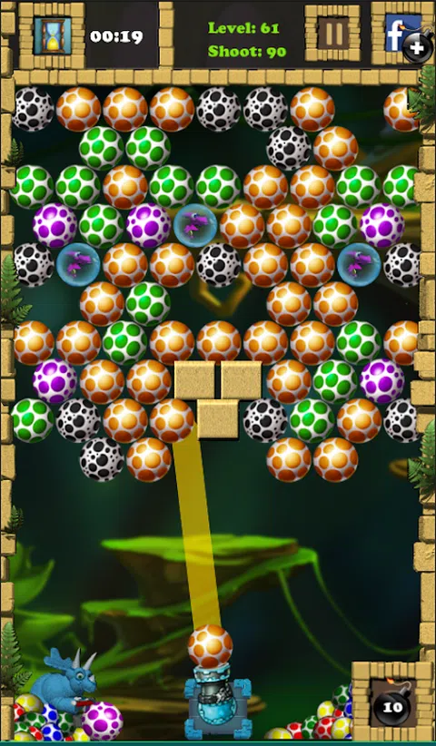 恐龙蛋即将成为泡泡射击类型游戏中最棒的游戏 有4钟不同游戏模式。所有这些模式都趣味无穷。让你玩上数个小时。不容置疑 1.经典模式 让彩蛋不碰到底部的绳子。尽所能延长游戏时间可获高分 2.益智模式 多个有趣且很难的关卡。150关。 一些关卡有障碍物。小心,障碍物无法爆破。让我们发挥聪明才智,尽情游戏吧。 3.限时模式 挑战你的射击速度。 快速游戏以清除所有行的彩蛋。 特点 1.更改彩蛋可游戏 2.选择难度级别(容易、普通、困难) 3
