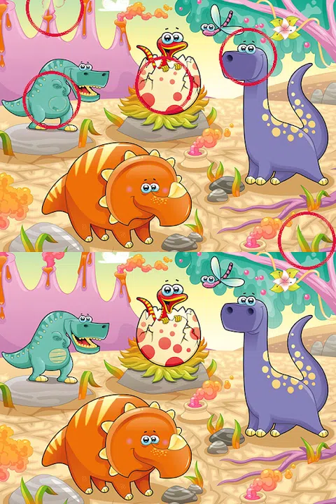 享受用手指玩。用你的眼睛来解决可爱的恐龙的照片的区别。 对你有帮助选项,当你无法找到不同的某个时候。查找恐龙和朋友的不同部位。希望你必须喜欢它。 怎么玩。 - 看,发现每个恐龙照片的区别。 - 寻找5点隐藏在不同的恐龙游戏。 这个游戏的好处。 - 帮助改善眼部的技巧 - 享受与你的朋友或家人放松。 如果你喜欢这个发现差异的卡通游戏,请帮我们投票5星,我们承诺,每周都会做一个好游戏为您服务。如果你有问题请随时与我们联系