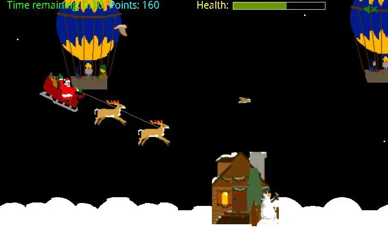 引导圣诞老人的雪橇并将礼物送给今年表现良好的孩子,只是不要给撒旦教徒,他们当然没有! 连续击中几个烟囱(不掉地上任何礼物),你会得到奖金